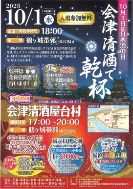 会津清酒消費拡大推進協議会では、毎年10月1日の「日本酒の日」に合わせて、会津清酒の普及と理解促進を図るための「会津清酒で乾杯」イベントを実施しています。「会津清酒屋台村」も同時開催!